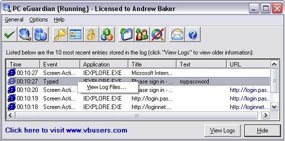 NEW. PC eGuardian also includes optional filtering that enables you to select which users and what applications (eg. Internet Explorer, Outlook Express etc) you wish to log.